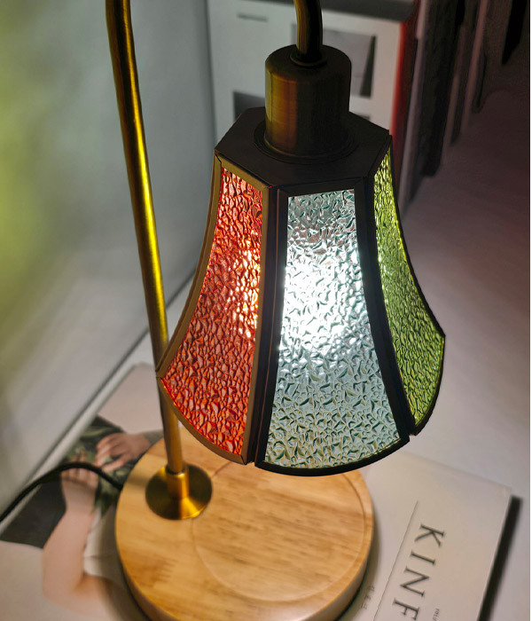 E14베이스 트랜디한 골드 & 우드 스테인드글라스